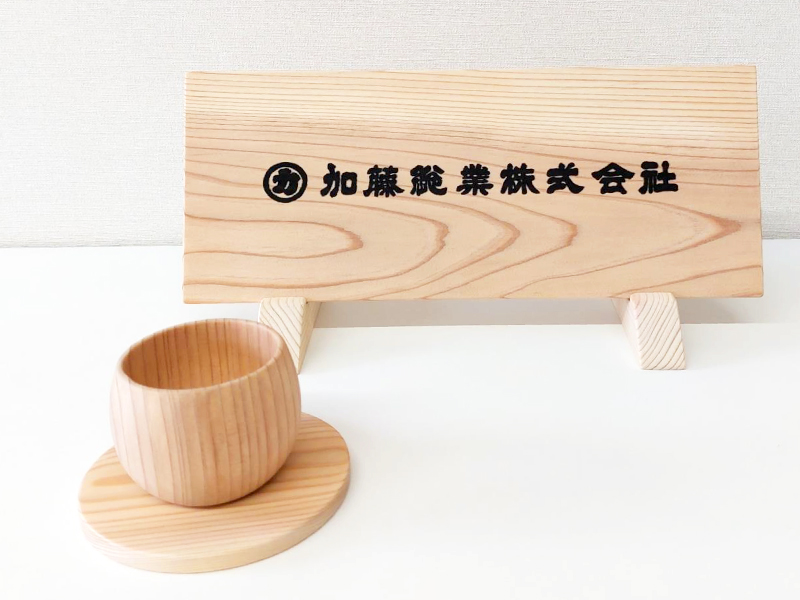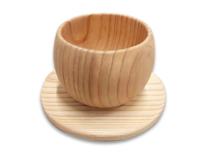 自然の木材で作った湯呑みとコースター(無害なので安心安全)
