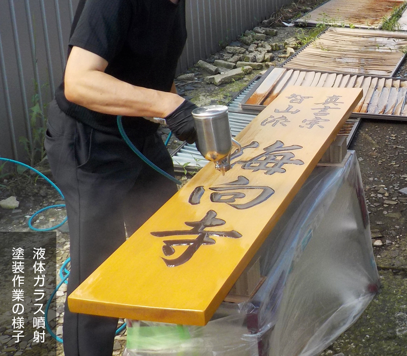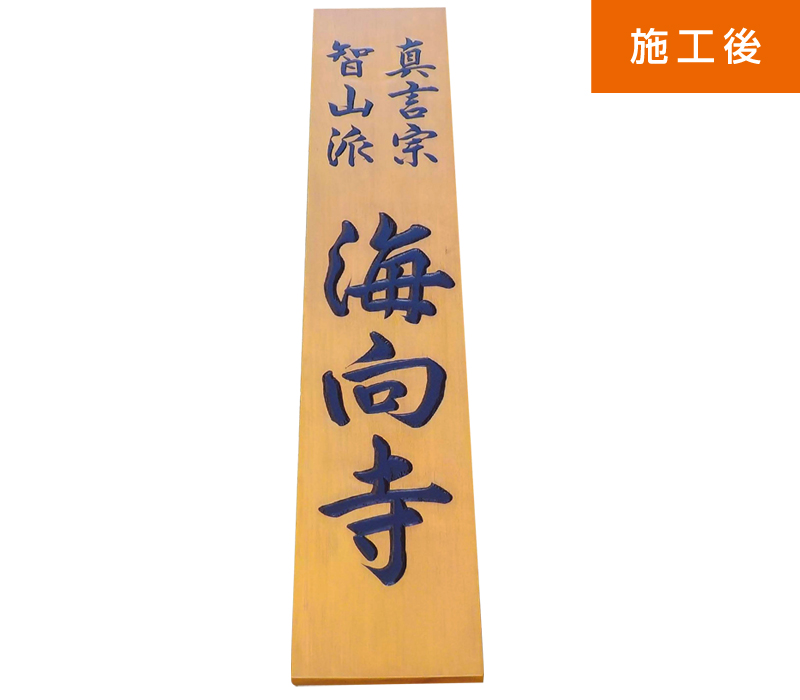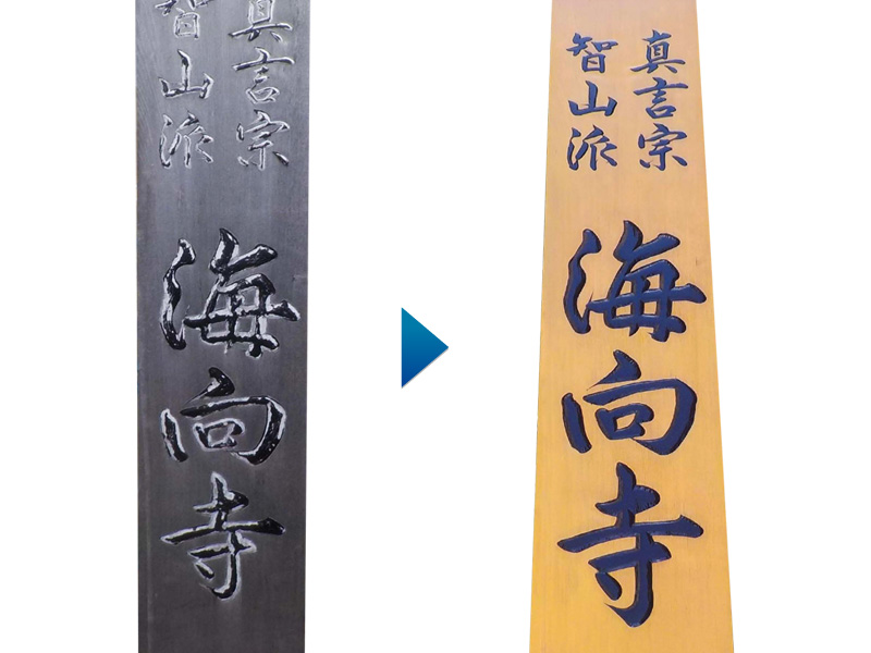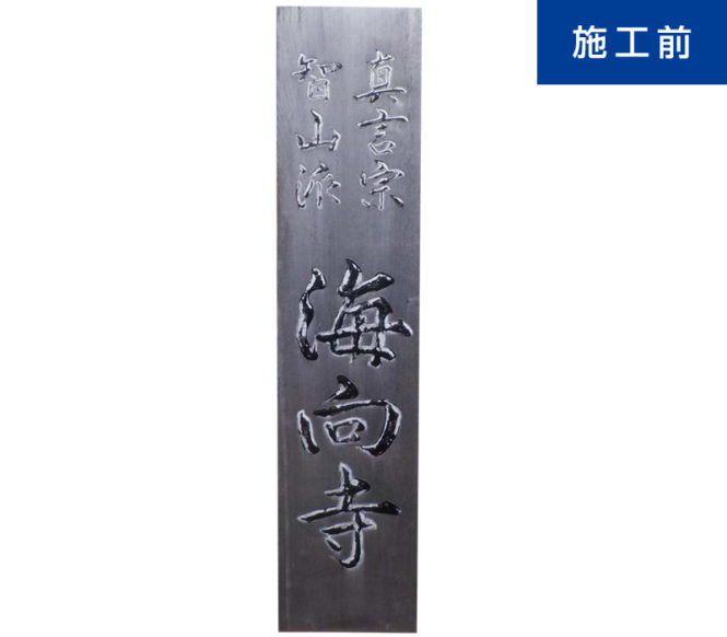 海向寺様看板(長い年月を経てまるで炭のような色に)